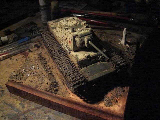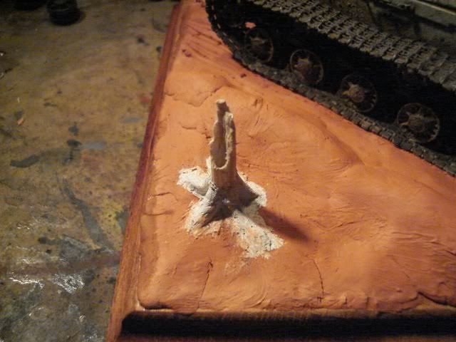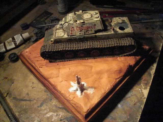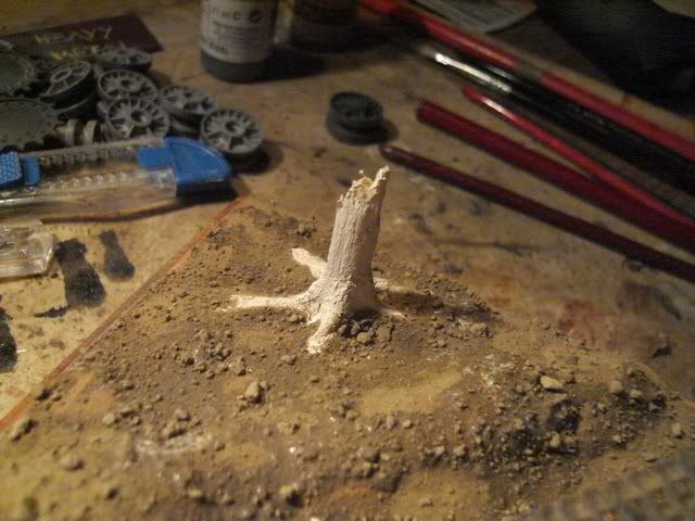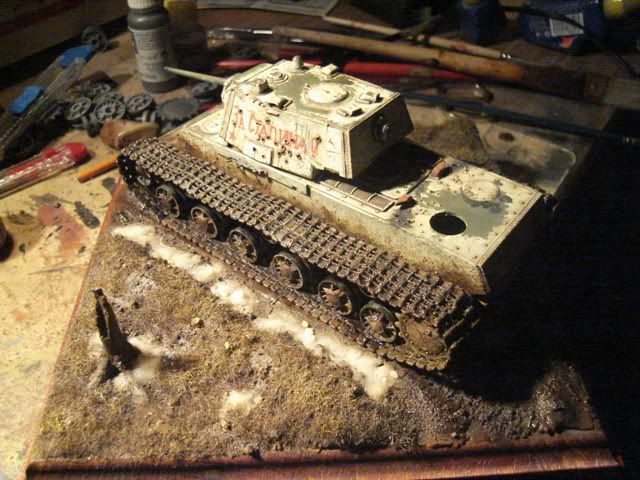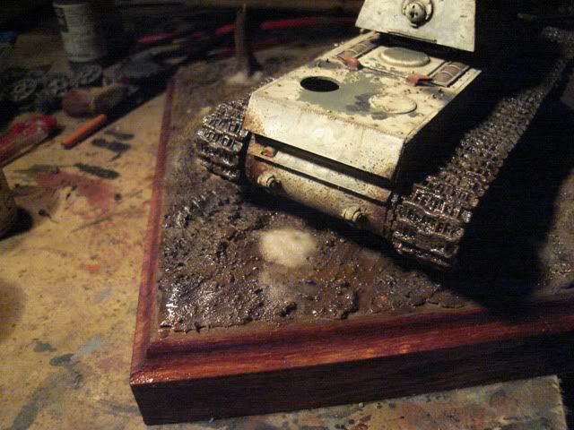 drziac sa motta: Nic nerobit nasilu, ak je v hre sutaz. som vyrobil podlozku k staremu modelu, aby som ju nevyrabal dva dni pred Bratislavou... nic zlozite, placka, prachnivy strom na ozivenie. Topiaci sa sneh, blato, sucha trava.... myslim ze to KaVecku bude v nej svecat